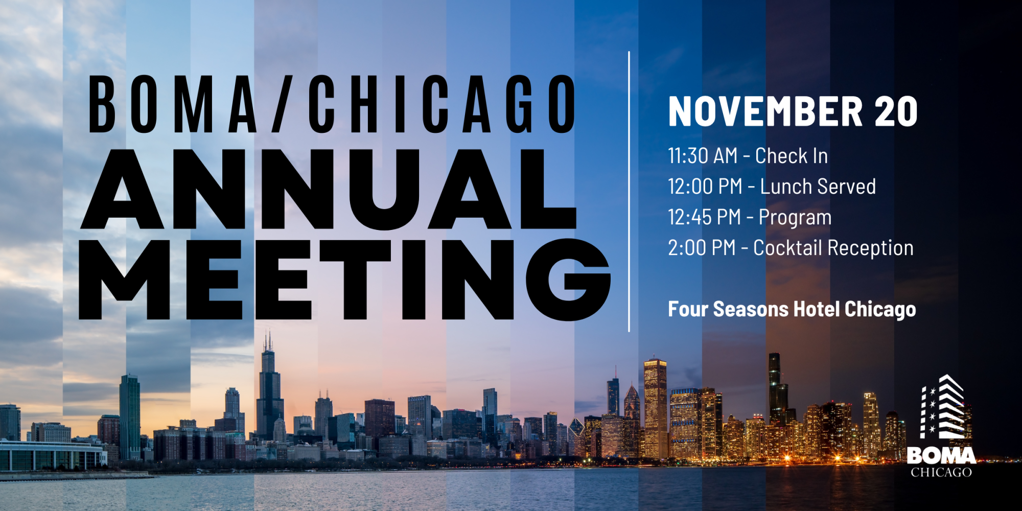 The Annual Meeting is the final major business and networking event held each year. 500+ BOMA/Chicago members gather every November to elect the new Board of Directors, receive a recap of the year’s achievements, and gain insight into the strategic focus planned for the year ahead.